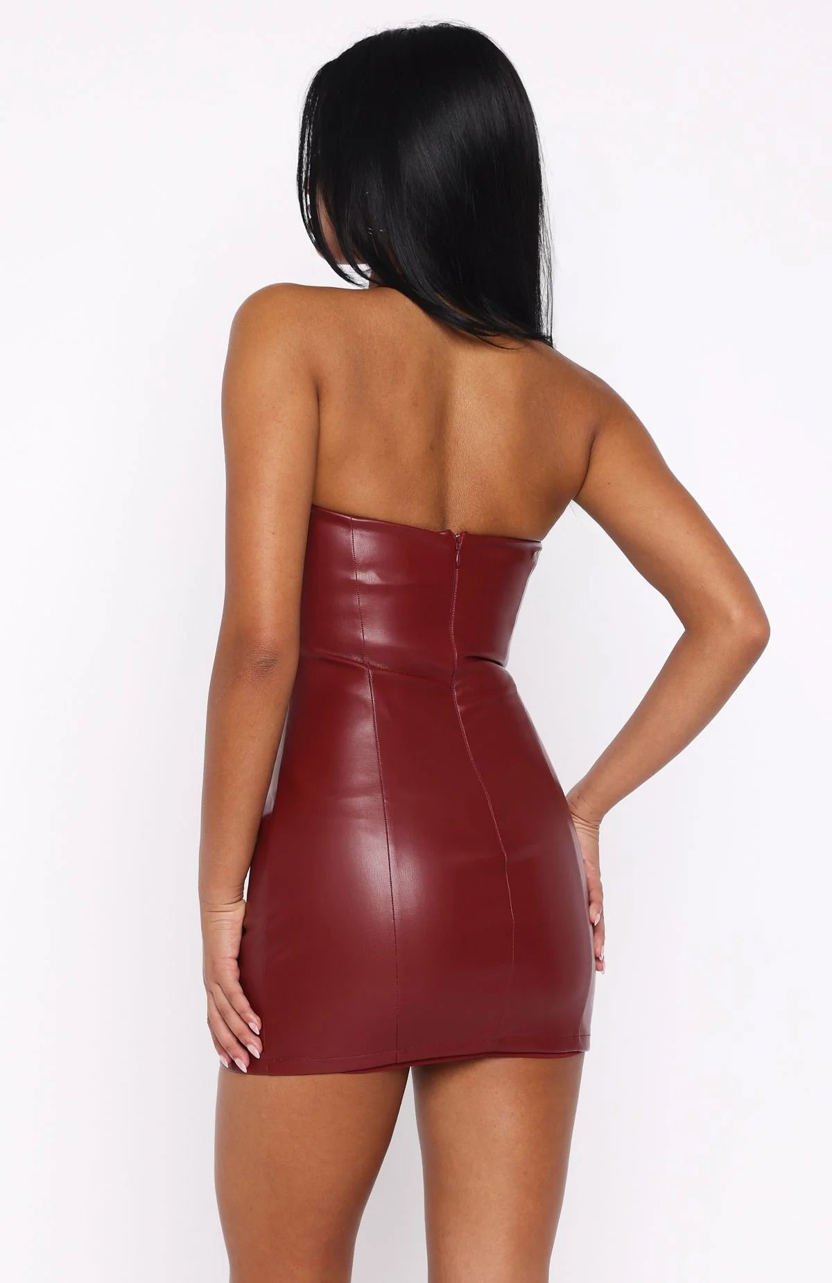 Made for maximum impact, the Nothing Personal Pu Mini Dress in Deep Red is the perfect dress to accentuate your shape. Features fixed halter neck straps, sweetheart neckline, second skin fit, backless, invisible zipper with hook and eye closure and lined material. Pair with your tallest heels and layered gold jewellery for an unforgettable look!