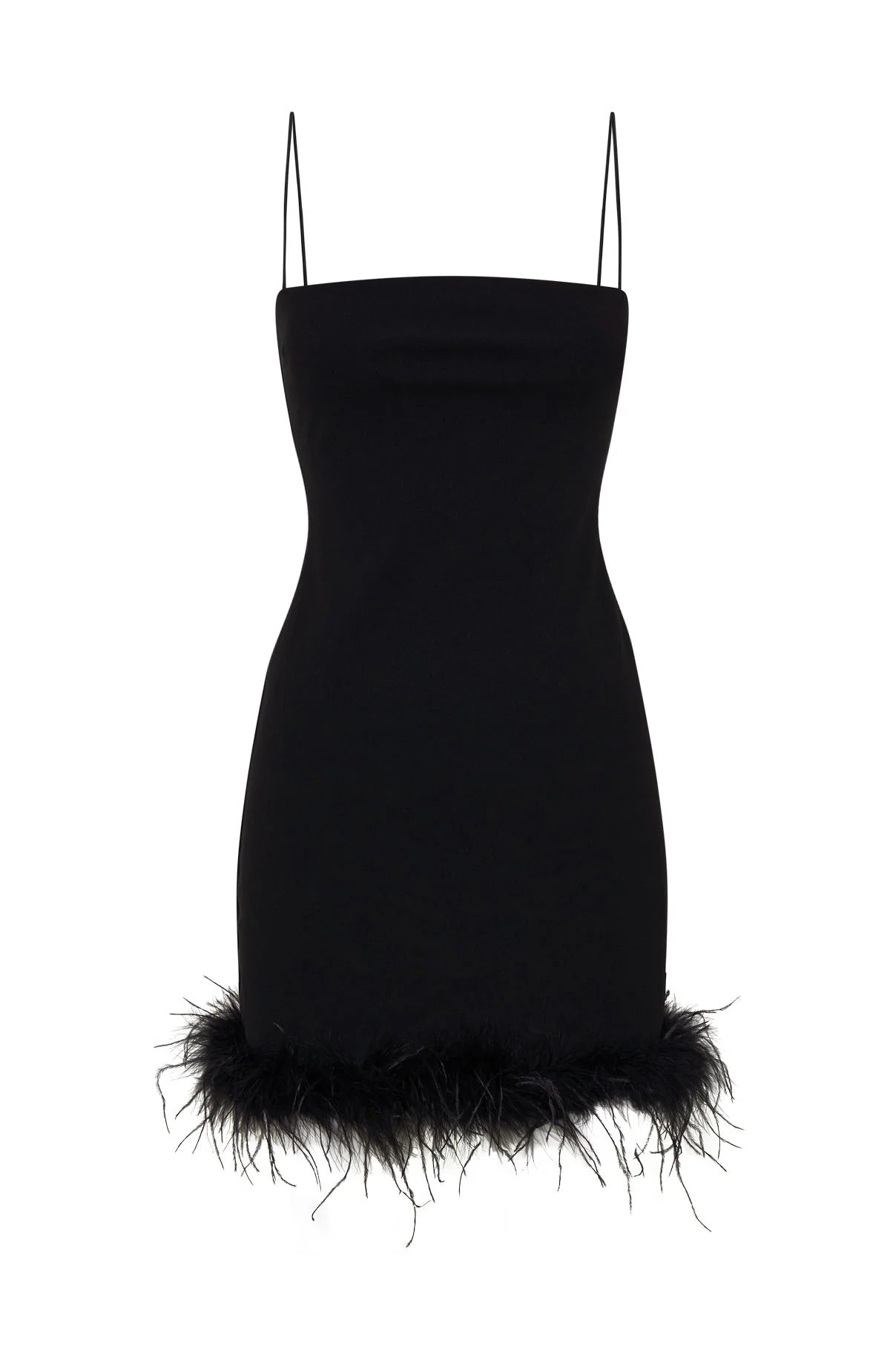 The Petty Princess Mini Dress in black channels feminine charm with a playful, carefree edge. It features thin elastic straps, a flattering square neckline, and soft mesh lining. Finished with a flirty faux fur hemline and an invisible zipper with hook‑and‑eye closure. Finish your look with a trending polka dot combo of heels and a matching bag so all eyes are on you.