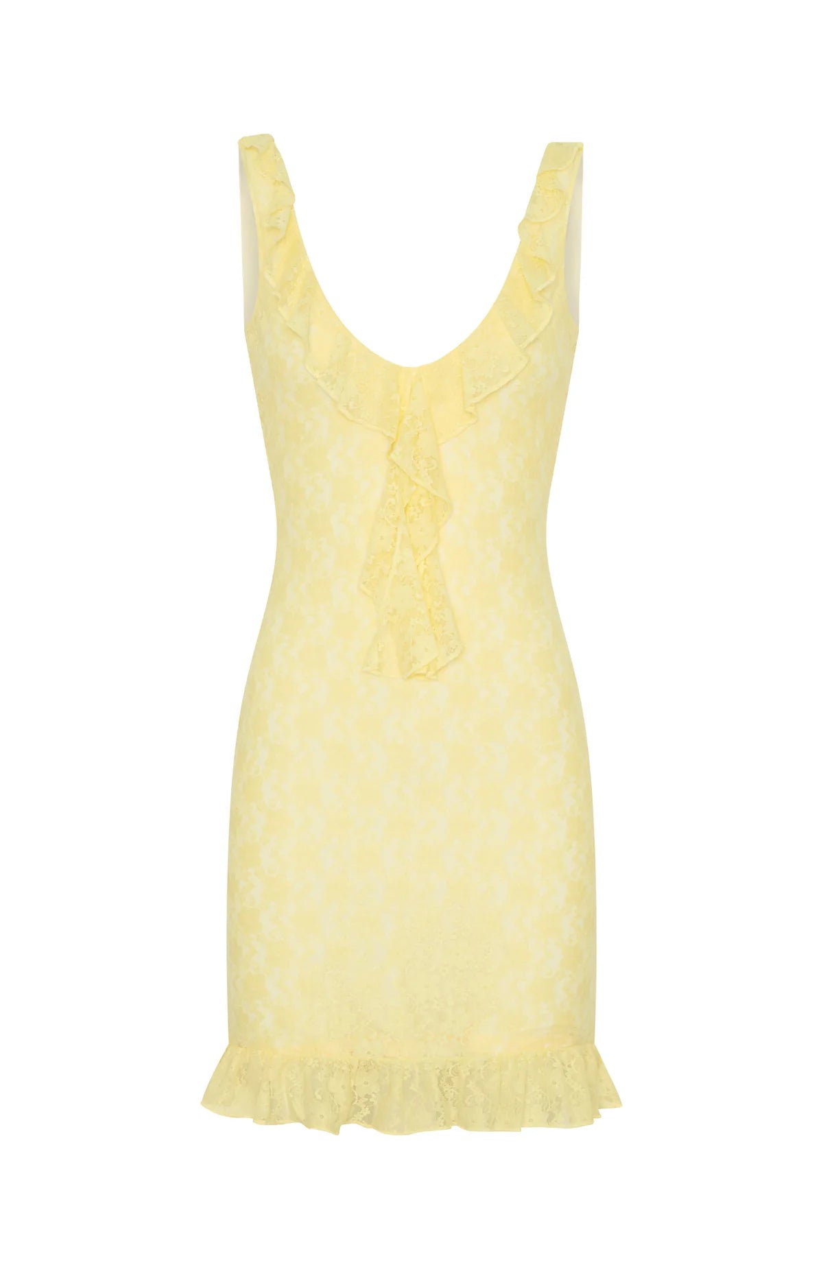Pretty and perfect is how we would describe the Take A Bow Mini Dress in Lemon. Featuring halter neck, plunge neckline with frill design, lined, stretch lace fabric, frill hem and low back design. We love this paired with gold accessories and strappy heels and let the dress do all the talking!